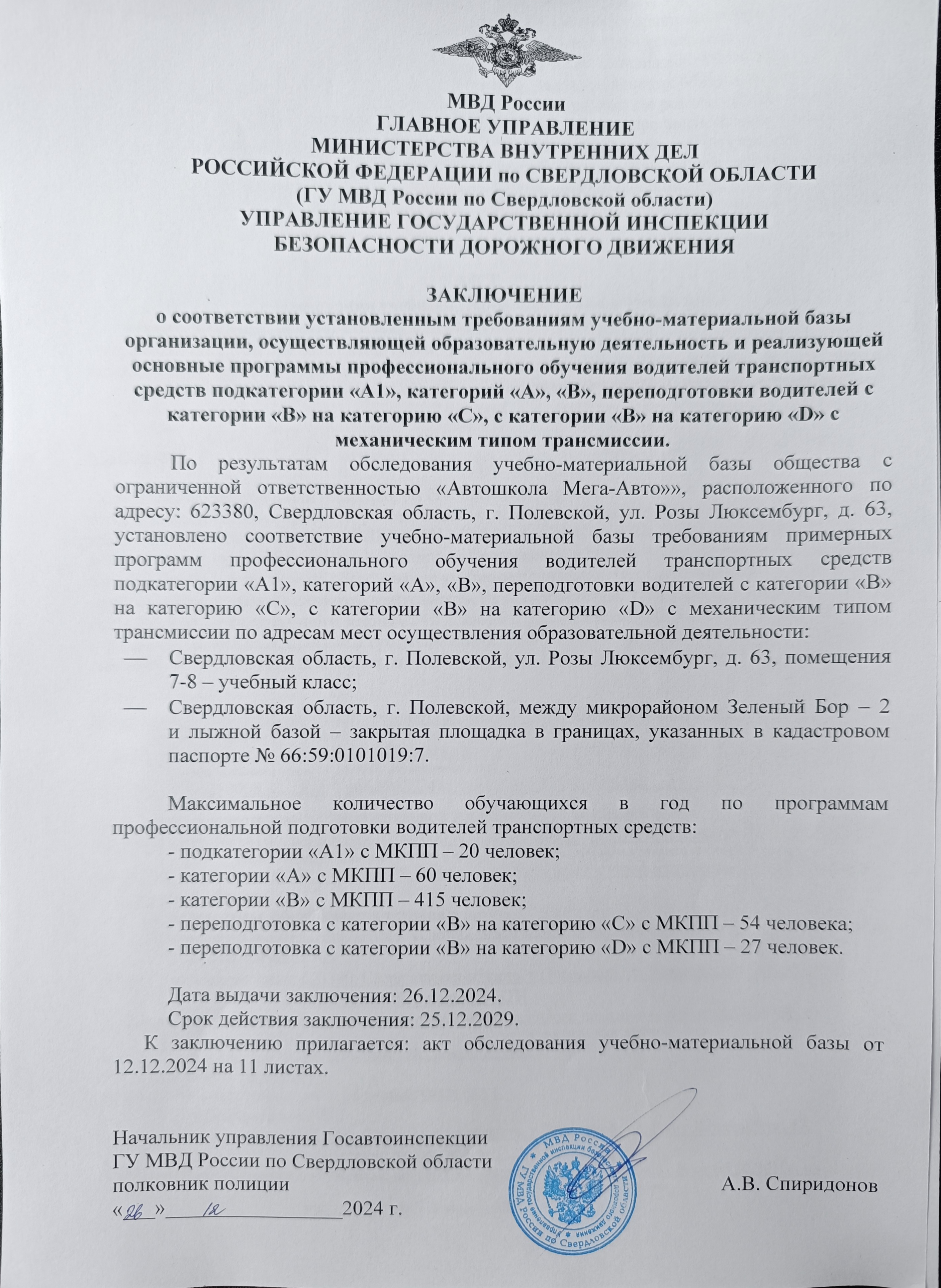 ДОКУМЕНТЫ АВТОШКОЛЫ "МЕГА АВТО"