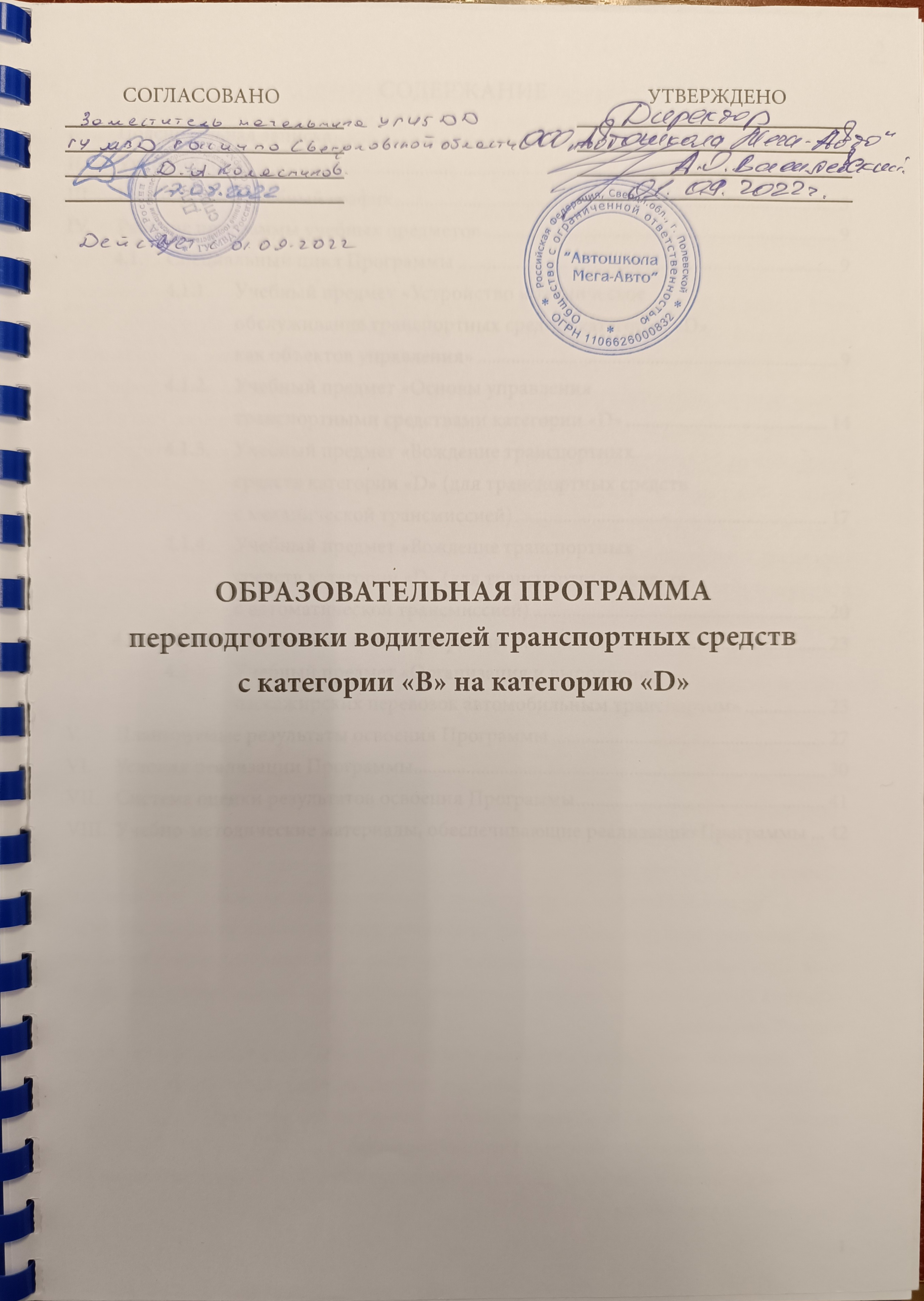 Образовательная программа переподготовки водителей транспортных средств с категории В на категорию D